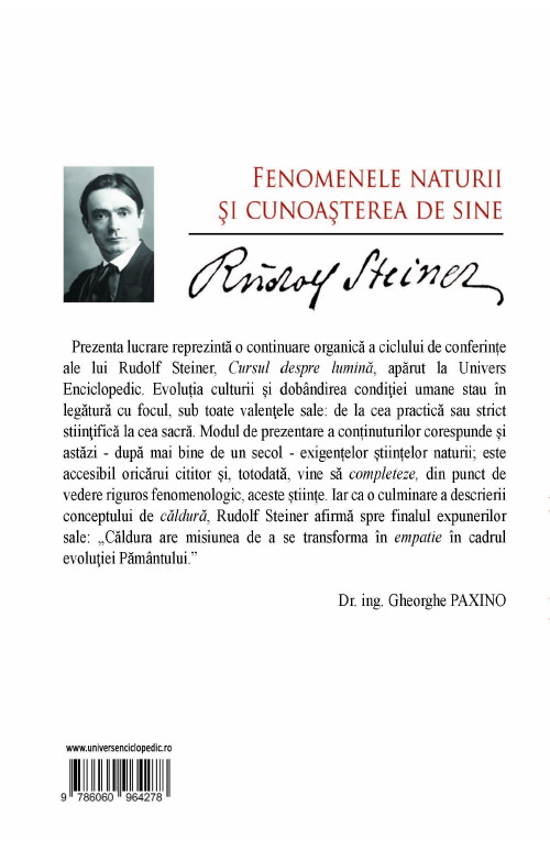 riguros fenomenologic, aceste ştiinţe. Iar ca o culminare a descrierii conceptului de căldură, Rudolf Steiner afirmă spre finalul expunerilor sale: „Căldura are misiunea de a se